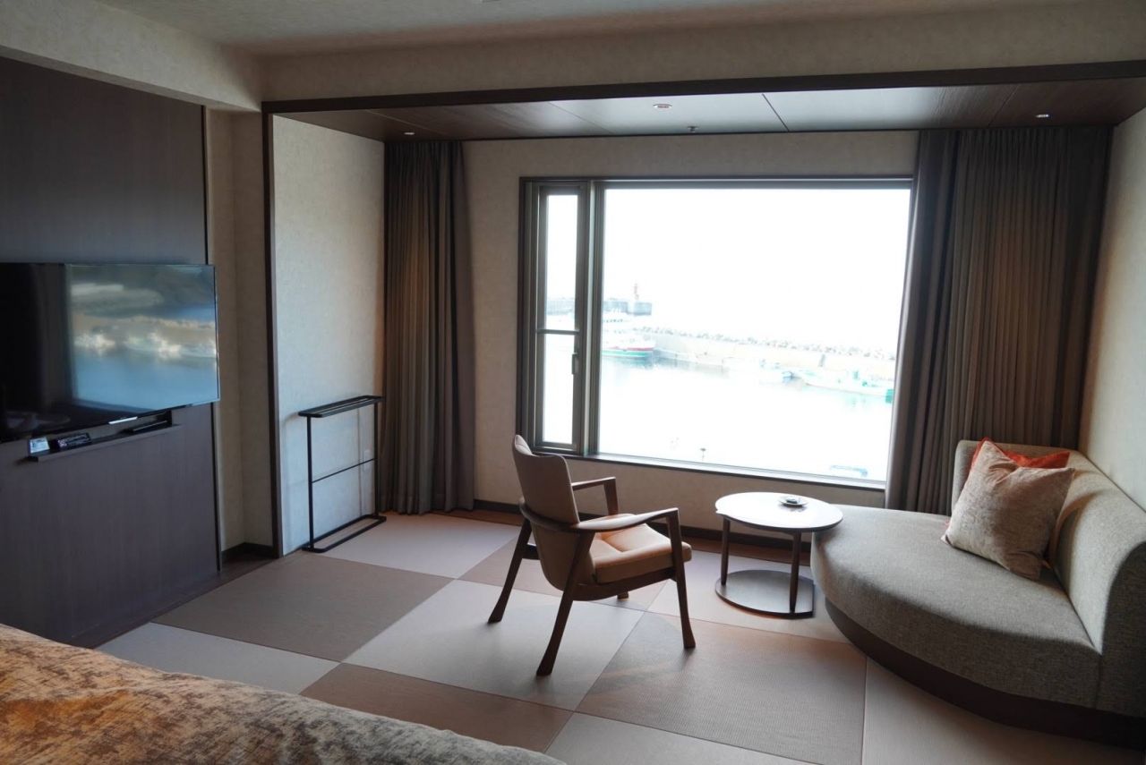 私たちはシービューツインルームで本館5階でウトロ港が一望できる素敵な部屋でした。