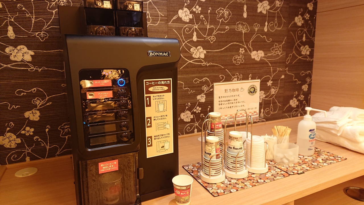 夜にはロビーでフリーのコーヒーや紅茶などもありました。
