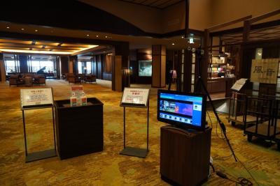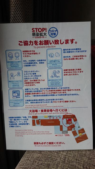 コロナ禍で、入館時にはサーモグラフィーでの検温、食事のブッフェでは、トングを持つ前にビニール手袋着用、食事中以外はマスク着用、さらに滞在時間が長くならないよう、デザートは部屋でもゆっくり食べられるようテイクアウト出来るようになっていました。