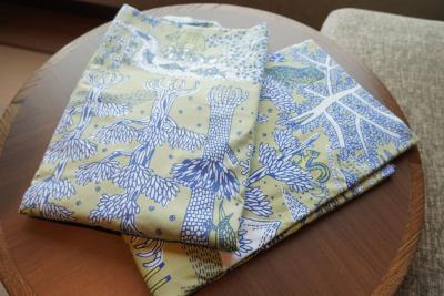 アメニティーは一人一人に浴衣など入ったカゴが準備されています。浴衣の柄のセンスがよい。タオルも今治タオルでふかふか。(家でもこんな風にセッティングしたい…)