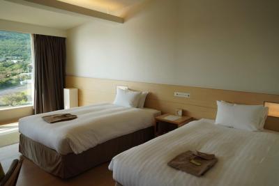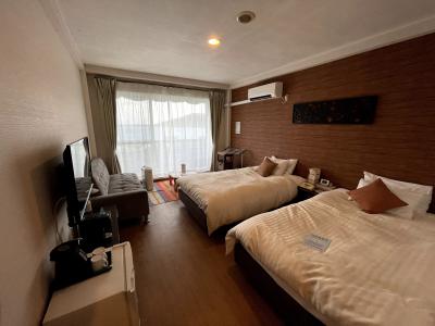 お部屋は1階のツインルーム(105号室)。多少古さは感じられるものの、空調や冷蔵庫もしっかり冷えて、水回りなどもまったく問題なく、しっかりメンテナンスされていました。毎日のお部屋のお掃除もしっかりされていて快適に過ごせました。