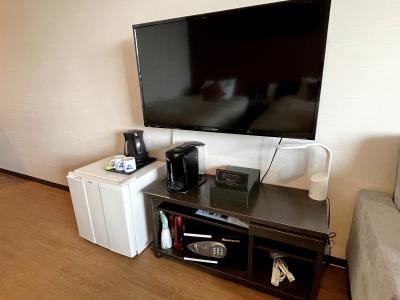 スーツケースもベッドの下に収納出来る。テレビも大きくwifiも快適。