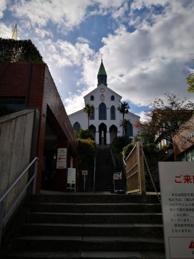 大浦天主堂です。大浦天主堂駅からは上り坂です。入り口から長い階段が有り...