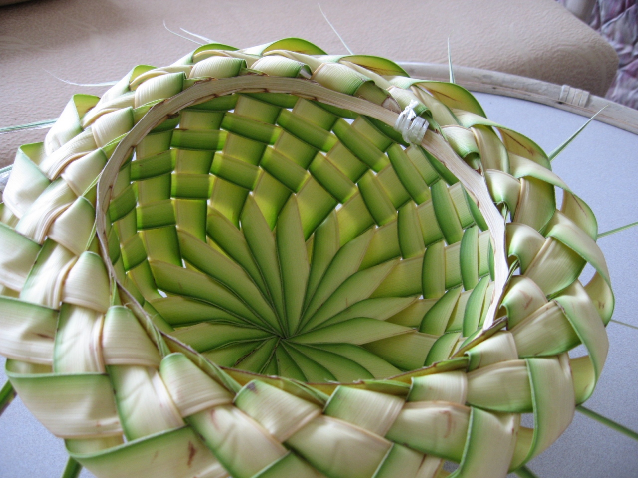 サイパングランドホテルのプールサイドにいる「Joby」が作るヤシの葉帽子は、緻密に計算されたものです。ひもを使って頭の大きさを測り、それを元に編んでいきます。編みこみの綺麗さ、仕上げの綺麗さはまさに芸術品です。(ちょっとほめすぎかも・・・)でも、作ってもらうと、思わず笑みがこぼれ幸せな気分になります。もちろん子供は大喜び。「Joby」は子供の人気者です。