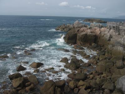 神津島に行くと必ず立ち寄る「赤崎」。遊歩道の先に行くと、がけ崩れの影響か、途中で遊歩道がなくなっています。途切れている所には、崩れた岩が残っており、壊したと思われる跡が・・・。結構危険な感じです。でも、景色はきれいでした。もちろん海もね。