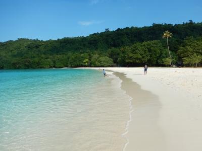 ガイドブックで見るかのような、真っ白な砂浜に青い海。