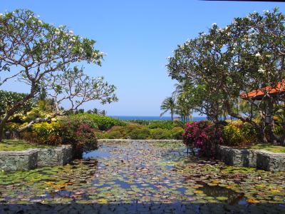 でも、色とりどりの花や蓮の池、バリ風の石像など目を楽しませてくれるものがたくさんあるので、散歩するのも楽しくなります。