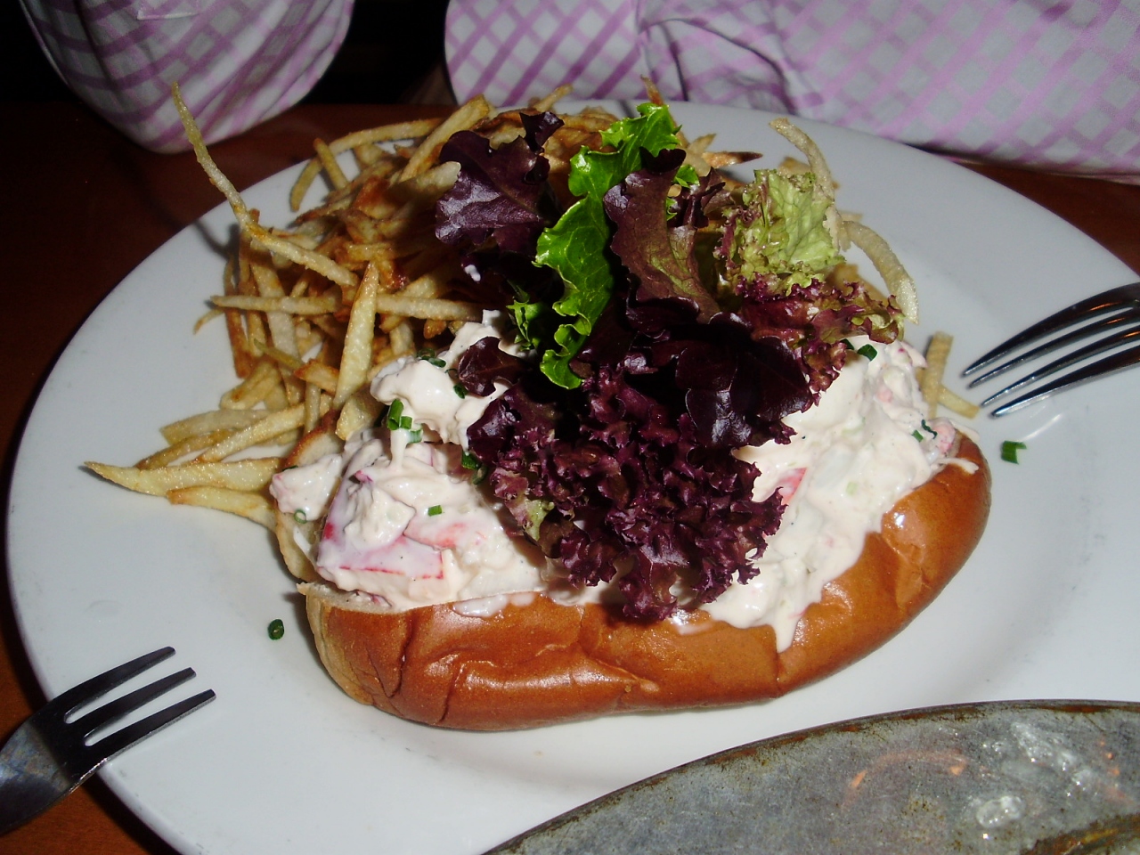 名物のロブスターロールは、ロブスターのマヨネーズ和えをバターロールに挟んだ物でボリュームも迫力も満点!