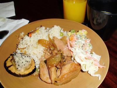 朝食は6-7種類の中から選んで、フルーツが少しとコーヒー/紅茶。