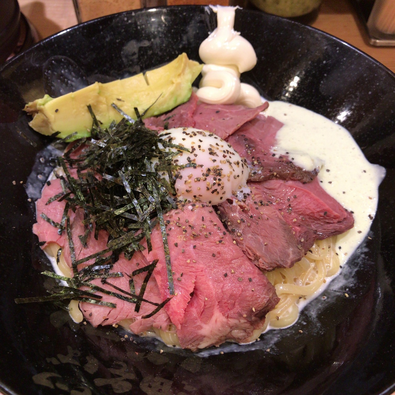 ローストビーフがのった麺ということで、そのビジュアルと、ちょっとゲテモノ挑戦気分もあってチャレンジしました。