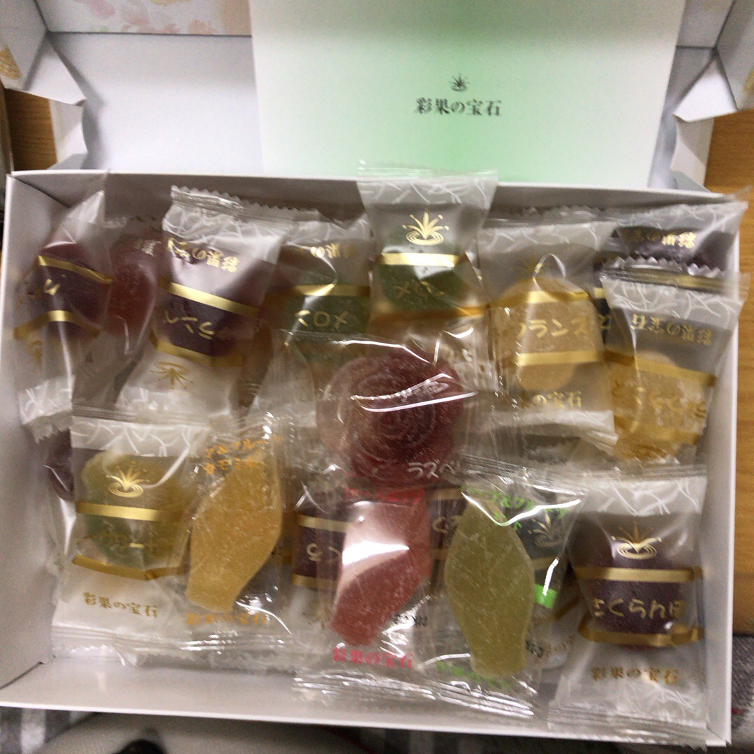 一口サイズの、フルーツの形をして、そのフレーバーのゼリーよりかたく、グミより柔らかい独特食感のスイーツのお店です。