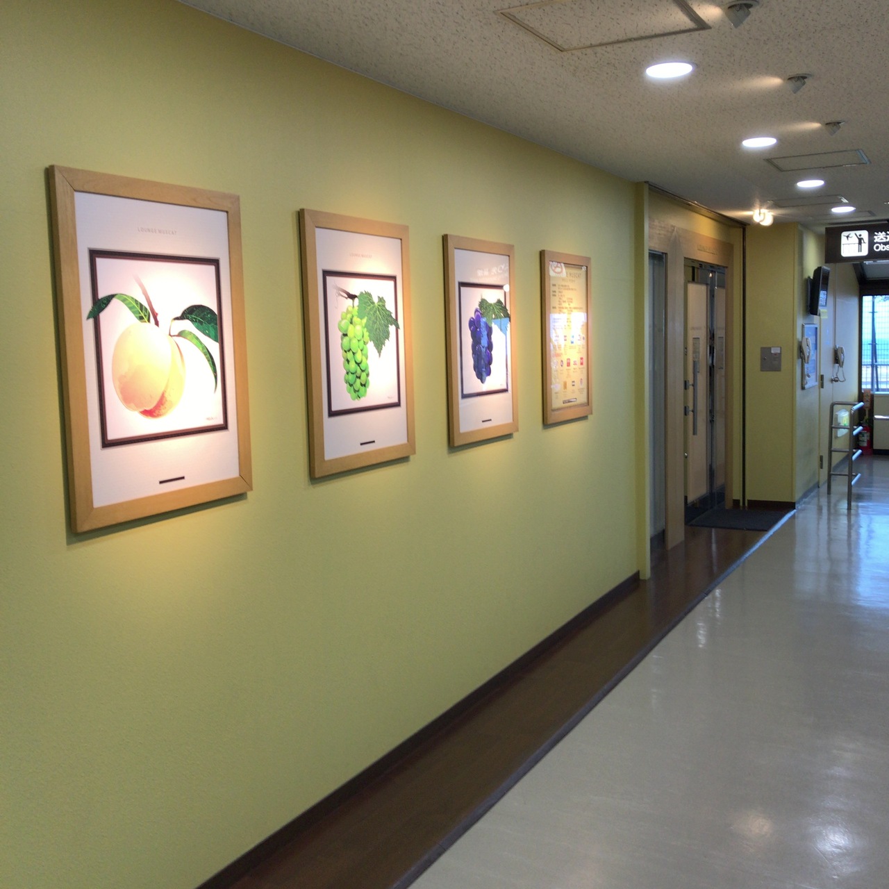客室階ドアと壁はワイン工場のセピア色の写真。