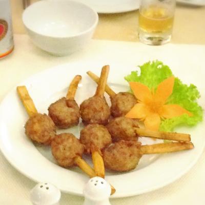 ごぼうらしきにひき肉をつけて揚げたものが、味が濃い目で美味しかったです。