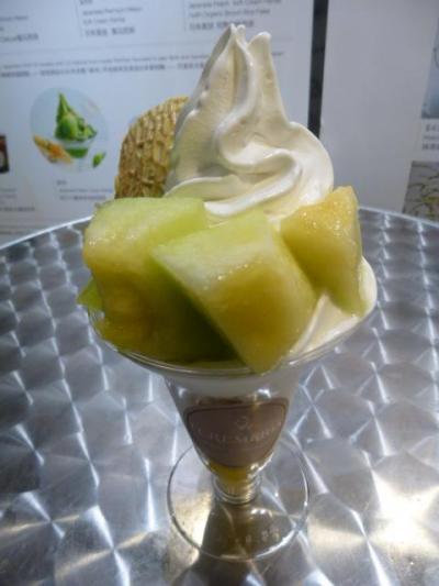 ということで、カットメロンがのったソフトに。88でこちらもいいお値段です。が、ソフトが濃厚でめちゃうま!です。- 旅行時期