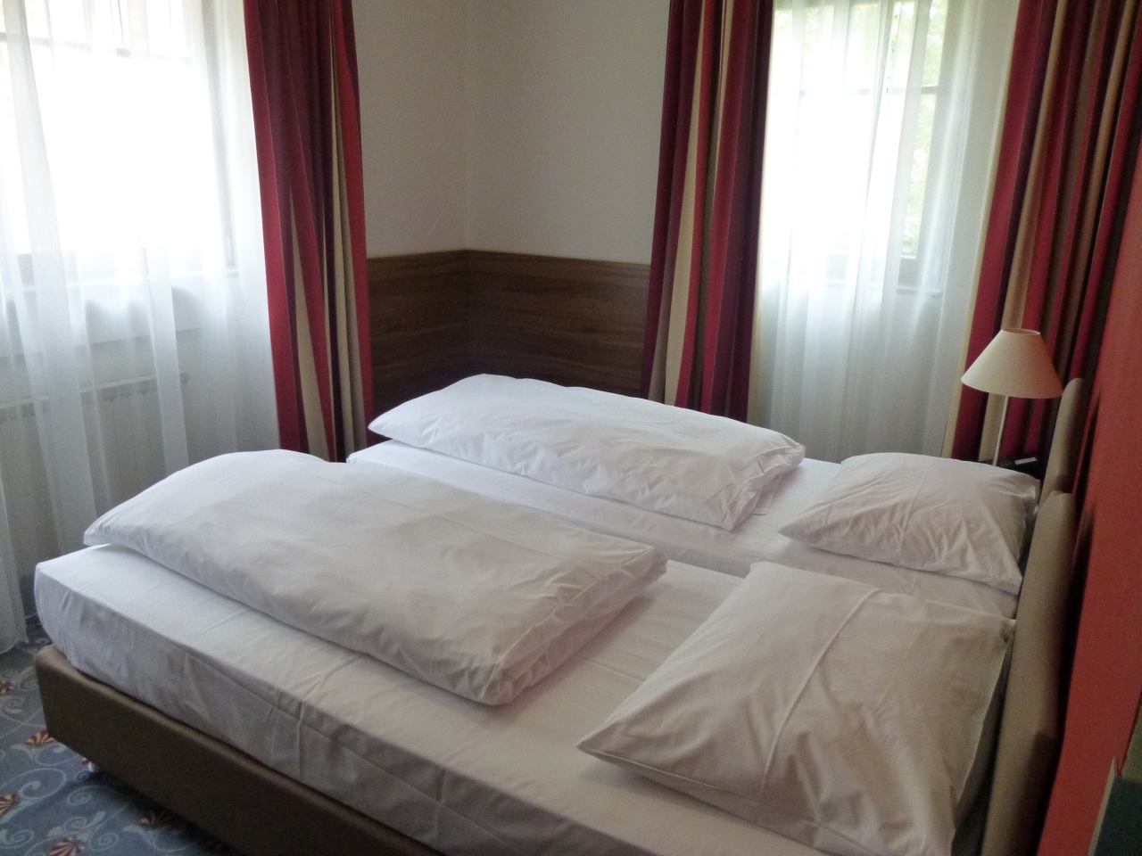 部屋は狭!ダブルベッドかと思ったら、ジュニアサイズ?みたいな細いシングル2つがくっついてました。