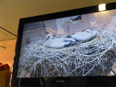 こちらの観光案内書のモニターには、建物の上に設置されたコウノトリの巣の様子をライブでうつしています!- 旅行時期