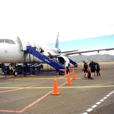 小さめで、飛行機には地上からタラップをのぼって乗ります。