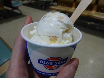 ブルーシールのアイスは、シングルで注文してもチビを1玉うえにのっけてくれます。