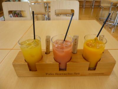 トロピカルジュース3種飲み比べは、ミニサイズではなく、普通のコップなので、1人で飲むのはきついです。