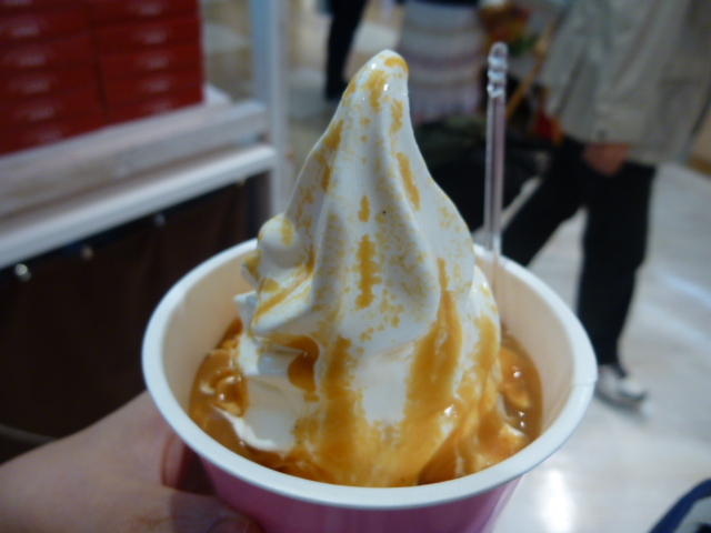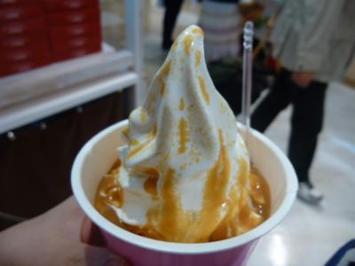 お土産の生キャラメル買いついでに、生キャラメルソースがかかったソフトクリームを買いました。