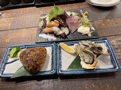 が、単品メニューからオーダー。4種のわらやきがのったのにしました。いい香りです。