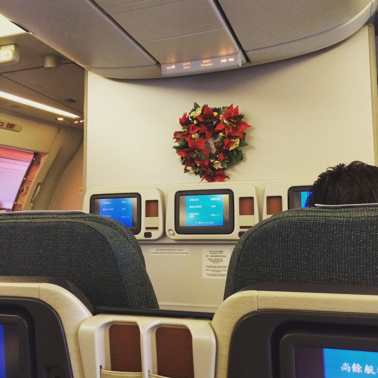 1月だというのに、機内にまだクリスマスリースが飾ってありました・・・