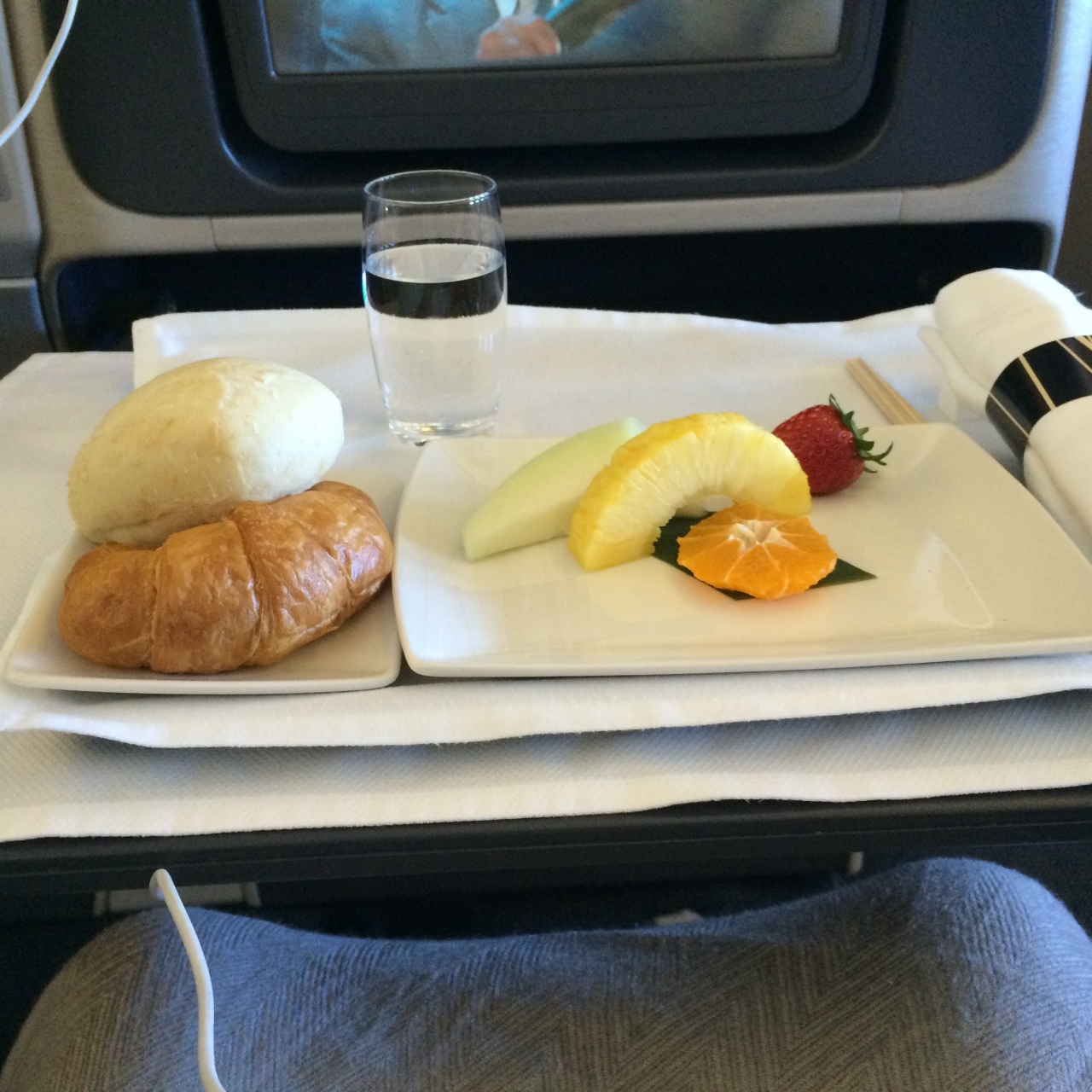 フルーツと、おいしいパンはうれしいですが、やっぱり朝の機内食は損した気がする貧乏性です(笑)