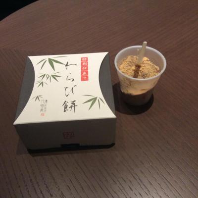 わらび餅はお試しサイズのカップに入ったのと、特別なうにょーんと伸びたのをこうにゅうカップは当日限りで、むっちりとしているのに口に入れるとふるふる
