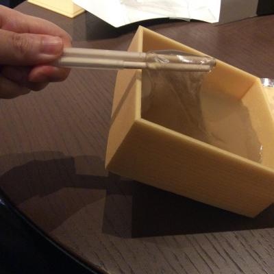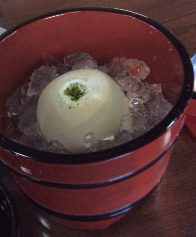 豆腐の中にノリに包まれたからしが入っているので取り出しておだしにといていただくらしい。