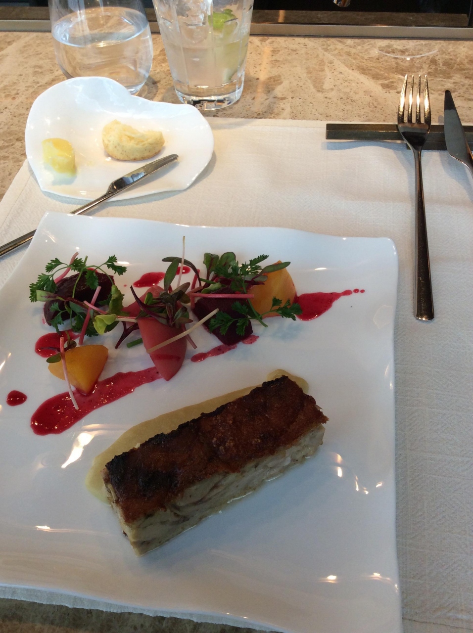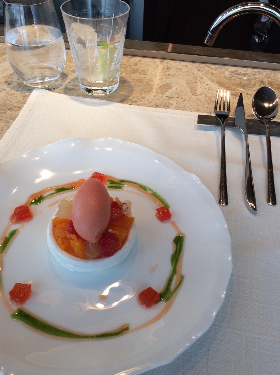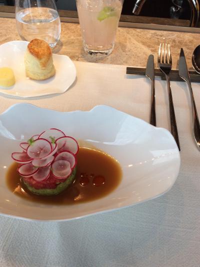 カウンターでいただく、今回も和やエスニックも取り入れた創作フレンチでした。