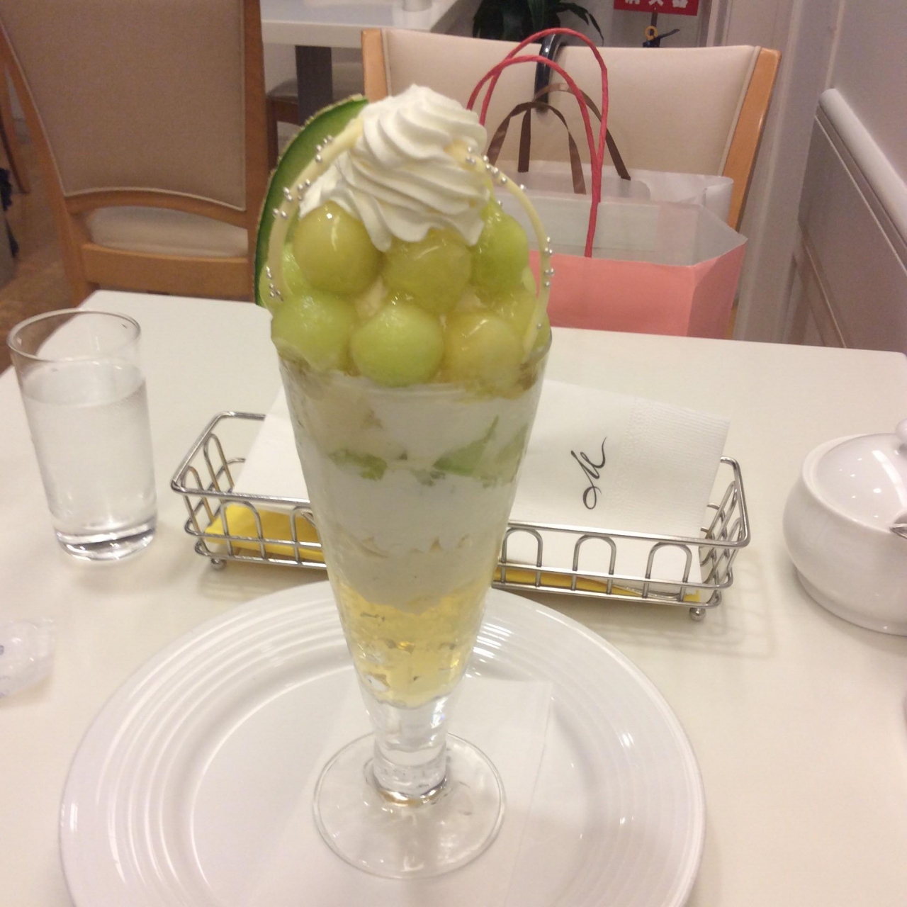 マンゴーのパフェのつもりが、季節限定の佐藤錦と迷い、他の人が食べていたメロンのが美味しそうで結局メロンのはちみつパフェに