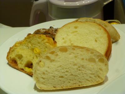 カウンターオリジナルメニューにはパン付の商品が多く、パンコーナーのパンあれこれをスライスして盛りつけてくれます