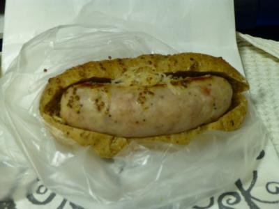 全粒粉入りパンにサンドされた本格的ソーセージのドッグ
