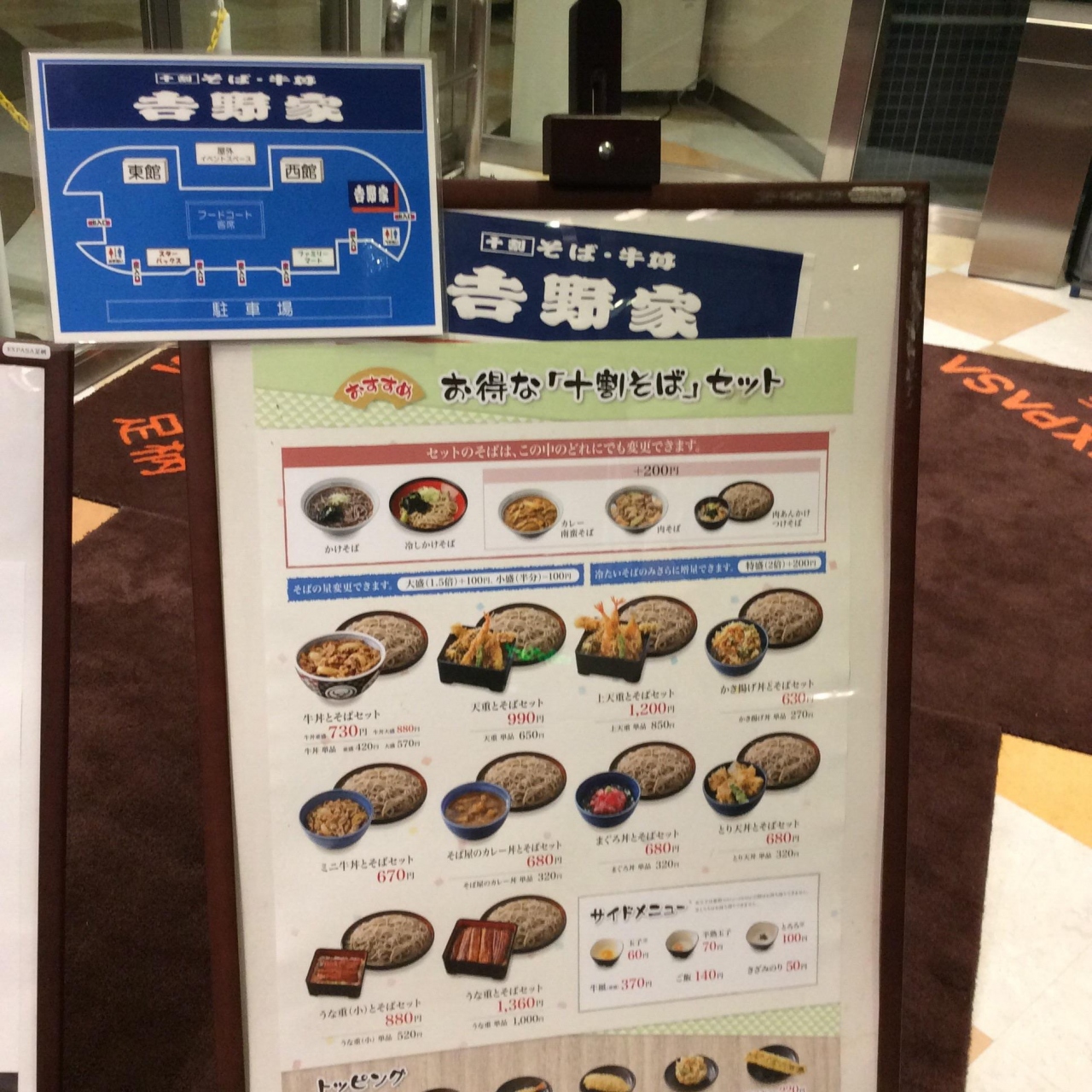 な~んと、足柄サービスエリア下りに、そばを売っている吉野家を発見しました!