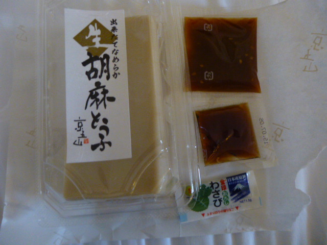 こちらのお店、生胡麻豆腐があるとのことで、生とつくと普通の胡麻豆腐とはどうちがうのだろうか?という興味本位から購入しました。