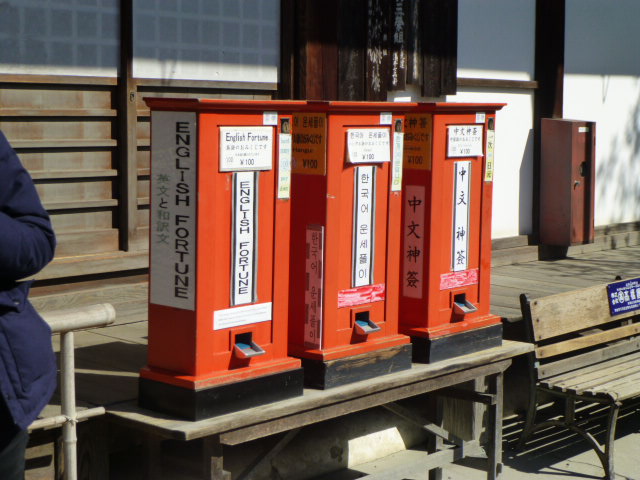 おみくじは英語・中国語・ハングルもあり、自販機というのが・・・外国人客の多さを物語っています- 旅行時期