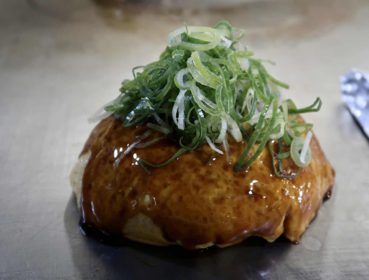 こちらのお店、すごく変わったビジュアルのお好み焼きです。