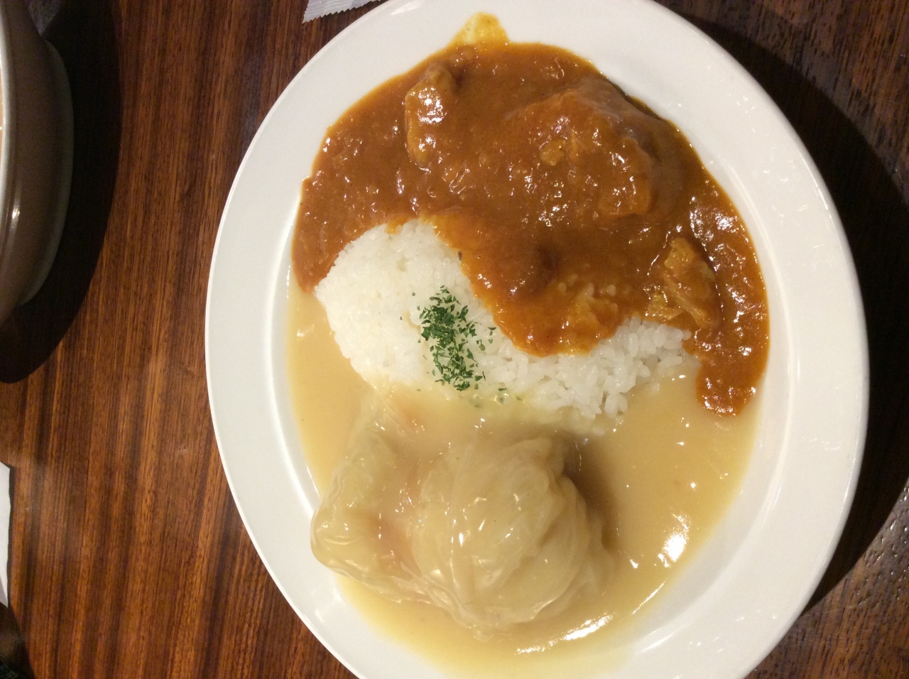 ライスをはさんで、カレーとロールキャベツがいただけるというもの