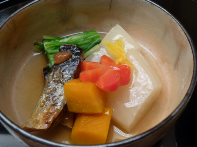丸大根、水菜、かぼちゃ、ニシン、金時にんじんのたき合わせ