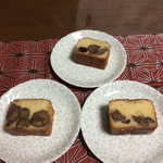 栗を使ったケーキで、たっぷり栗が入った製品が無いので、どこを切っても栗が必ず顔を出すケーキを自分で作ってしまいました。ケーキの生地が300gに栗が200gでずっしり重いです。