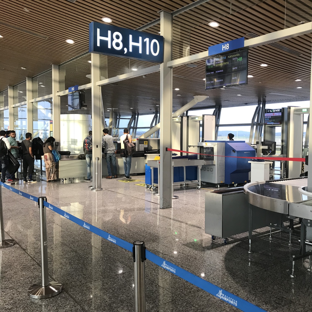 手荷物検査で液体は没収されるが、500ペットに100ほどの水は見逃された(帰りは没収)