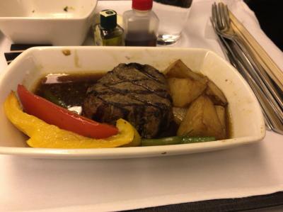 確かに朝食のオムレツはYで出ても違和感なさすぎる・・・なひどいクオリティ(しっかりしろ、成田のケータリング会社)だが、この夕食は多少はましかな?- 旅行時期