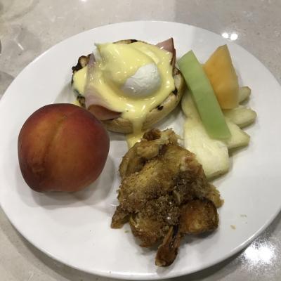朝食はエッグベネディクトステーションとあったが??と思ったら、途中から下のパンが出てきて、自分で組み合わせて作るらしい