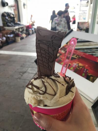 アイスは3フレーバーに3種から好きな板チョコ(結構分厚い)を刺して、チョコを垂らしてで6.5ユーロと安いです。- 旅行時期
