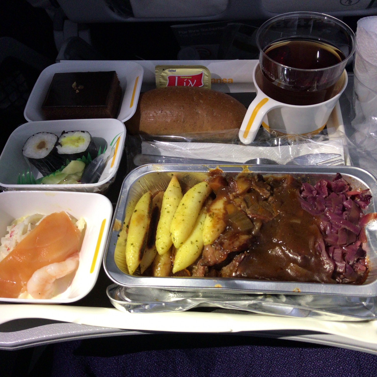 機内食はアナウンスで説明があり、ビーフかチキンというようにとのこと
