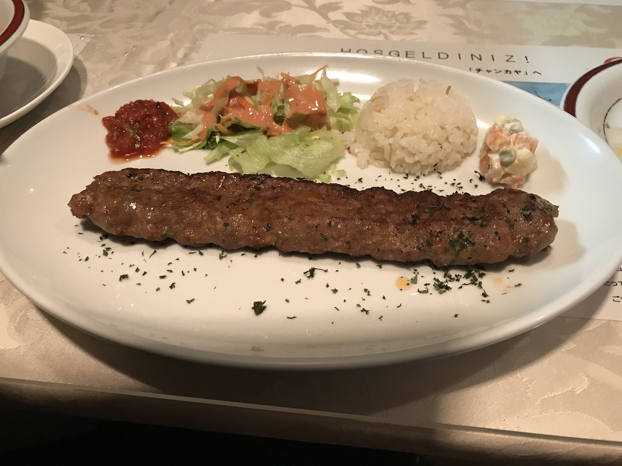 1550円のメニューにトルコ風ハンバーグ各種があり、香辛料の効いたアナダケバブにしました。