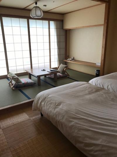 和風のお部屋ですが、ベッドがあり、洗面台も大きくて洋風のホテル仕様で、和洋折衷の使いやすくて良かったです。