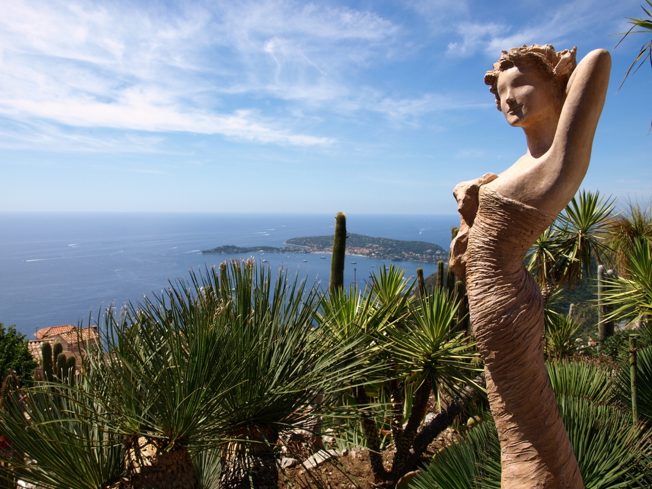 サボテンやヴィーナス像などエキゾチックな庭園から地中海の絶景が見られます。