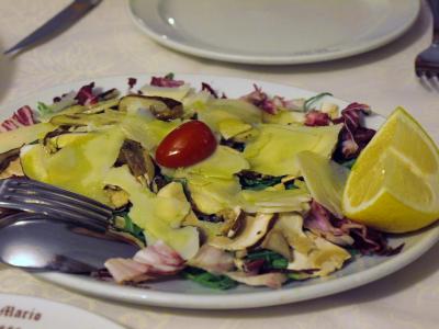 私たちは、ポルチーニ茸のサラダとフィレンツェ風ステーキを食べました。