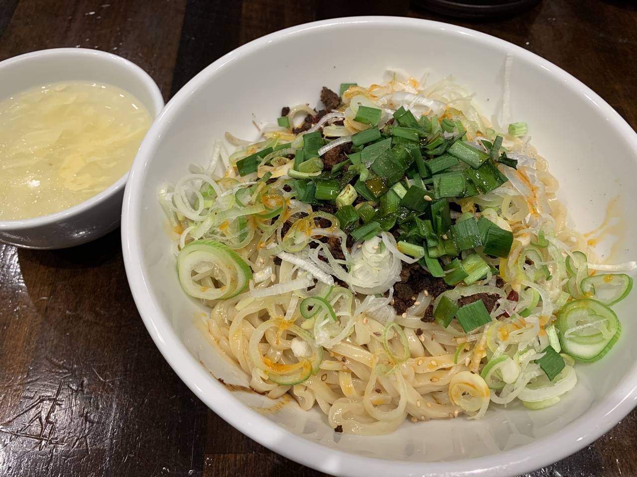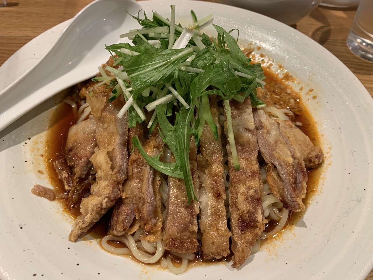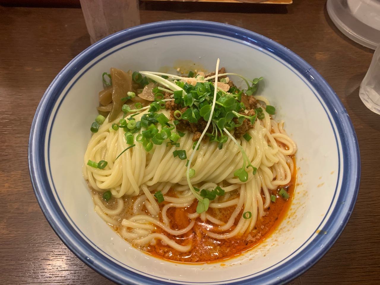 汁なし担々麺はジャージャー麺ぽい、甘辛い感じでした。